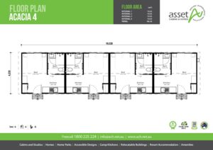 Scale up crew housing with Acacia 4—a four-bedroom version of Acacia Option 1, configured as four in-line, self-contained studios for mining and worker accommodation.