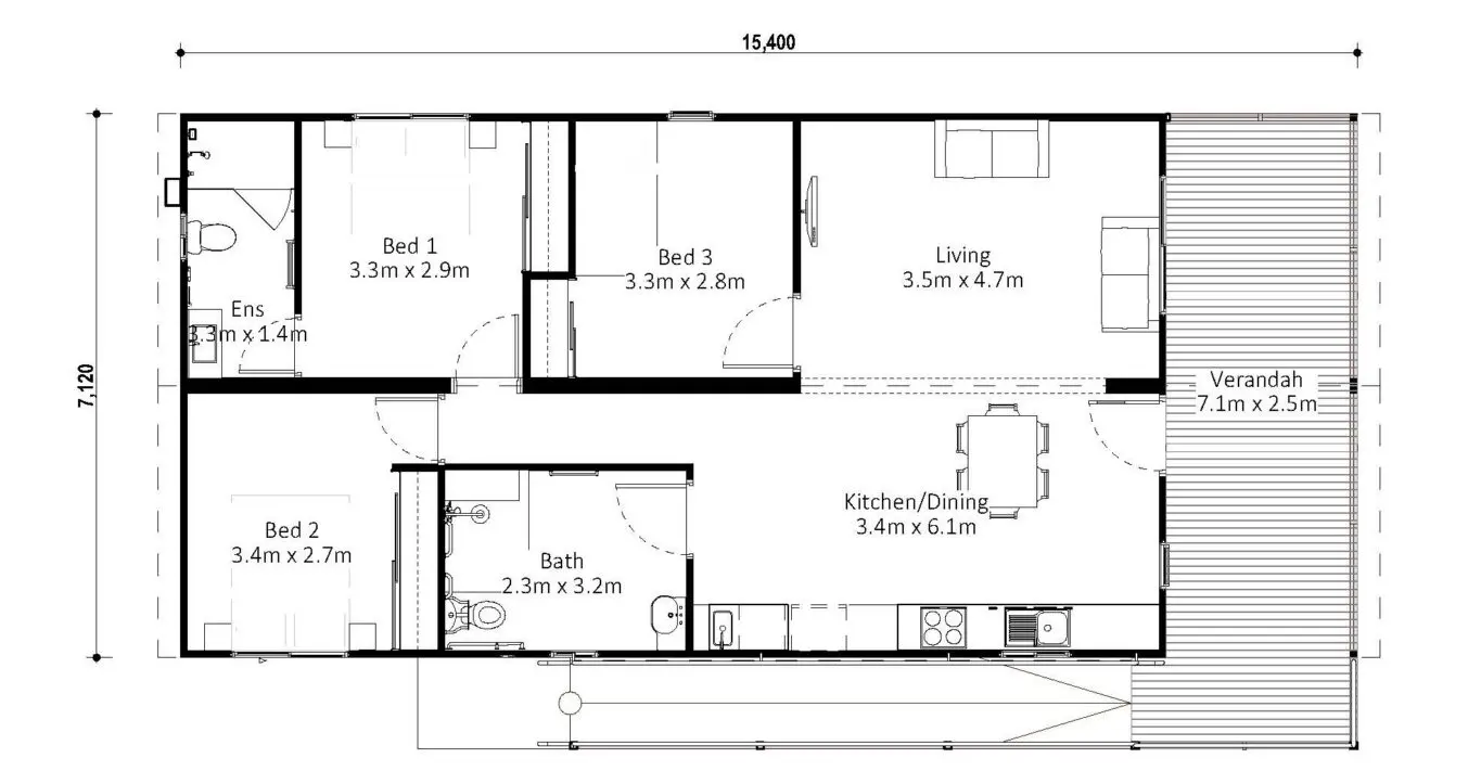 Access-First Layout – Open, easy-flow circulation between the verandah, living area, bathroom and bedroom 3, fully compliant with AS1428.1 accessibility standards.