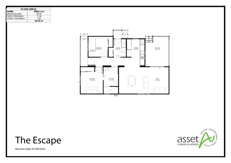 Introducing The Escape, a remarkable one-bedroom modular home boasting cathedral ceilings throughout.