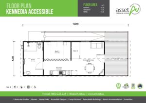 Accessibility-Led Layout – Clear, open circulation makes moving between verandah, living, sleeping, and bathroom areas effortless and aligned with AS1428.1 compliance requirements.