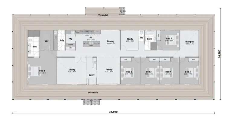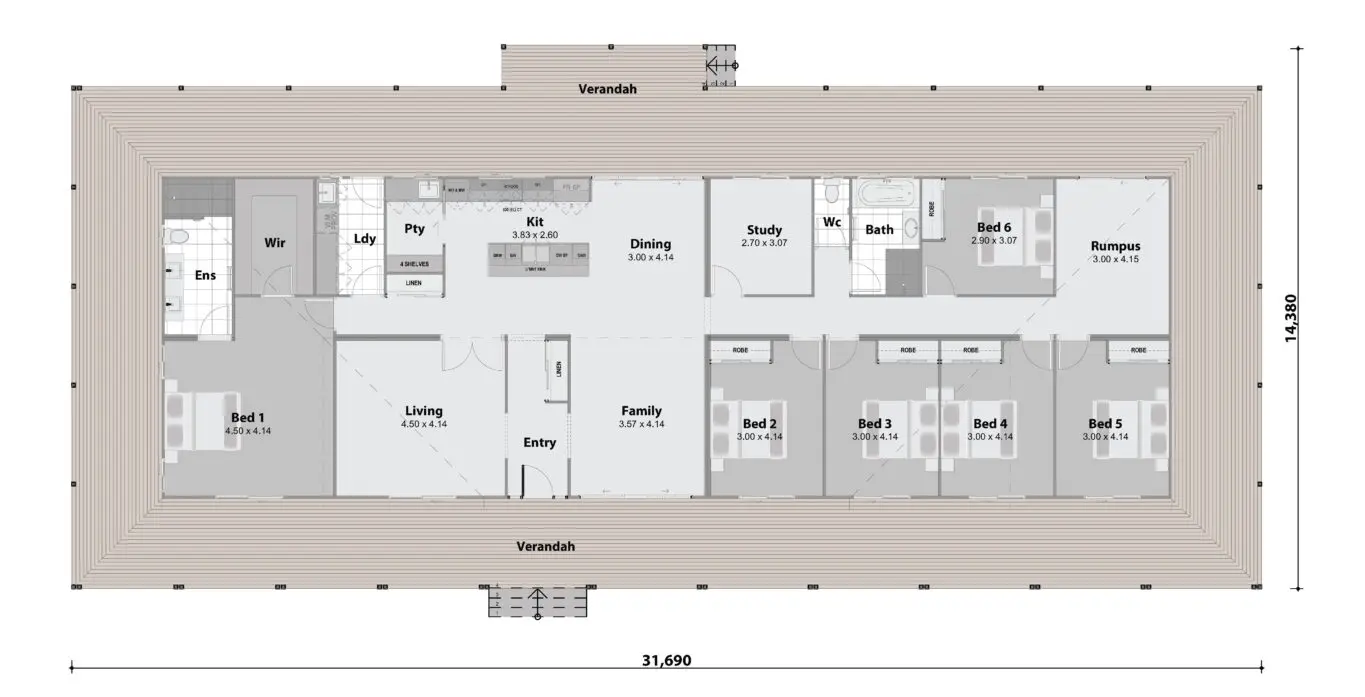 The Oregon 430 captures the classic features of an Australian ranch with large open spaces, high internal ceilings and a full wrap around verandah for the ideal country lifestyle.