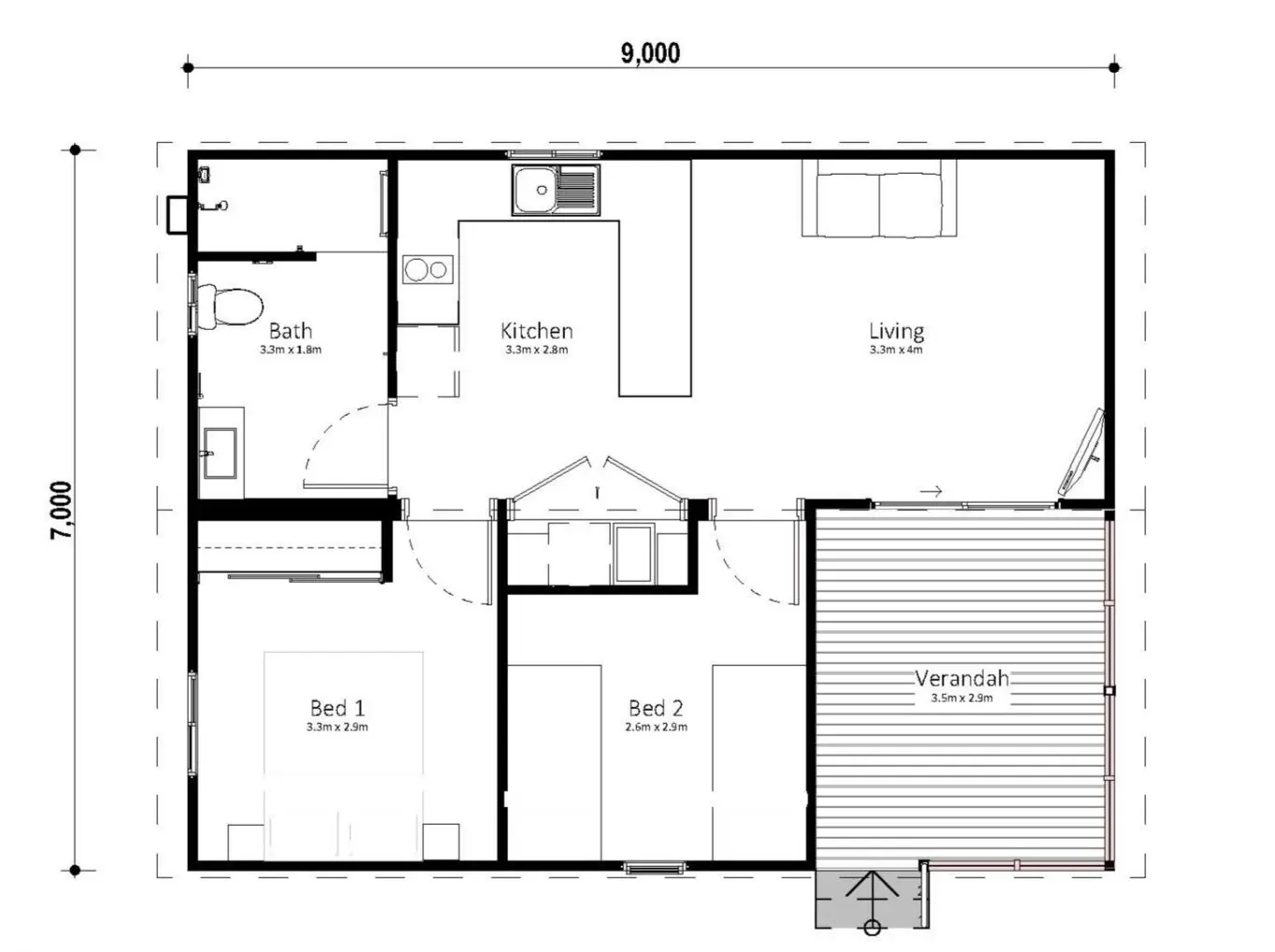 Integrated Verandah – Cleverly positioned within the cabin’s footprint, creating a sheltered outdoor retreat without extending the building line.