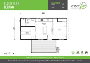 Welcome guests with Terang – a two-bedroom modular cabin designed for short-term family accommodation.