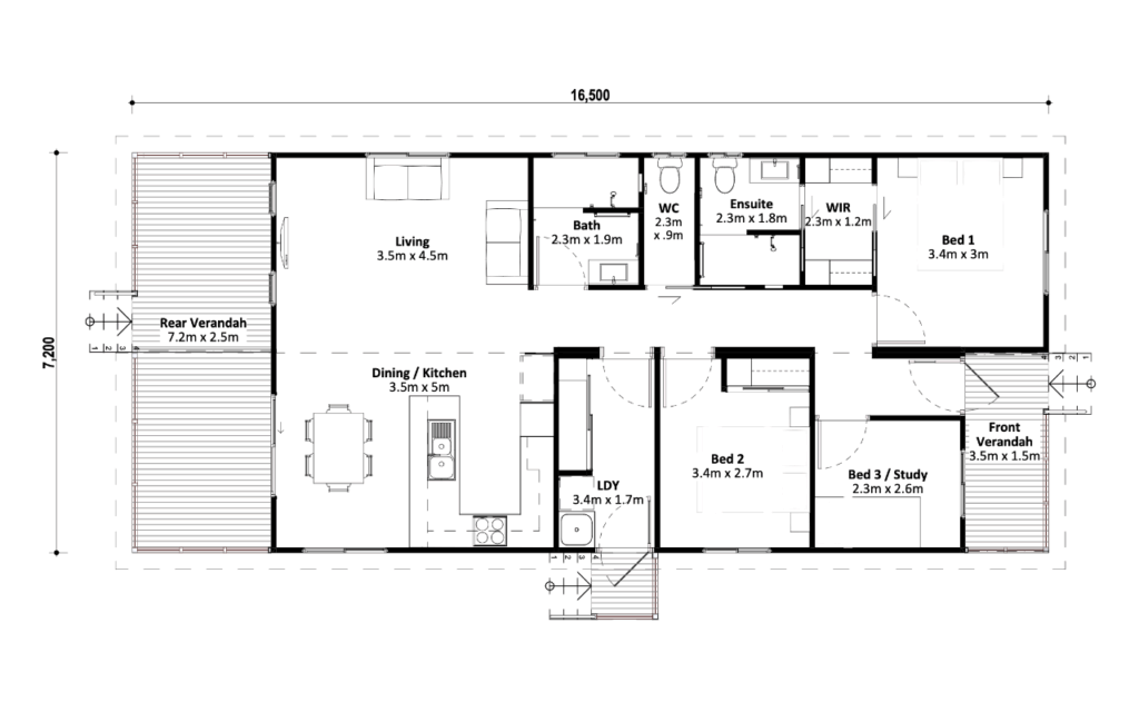 A generous living area and dining that opens to a verandah create easy indoor-outdoor flow, while a laundry landing also provides external access.